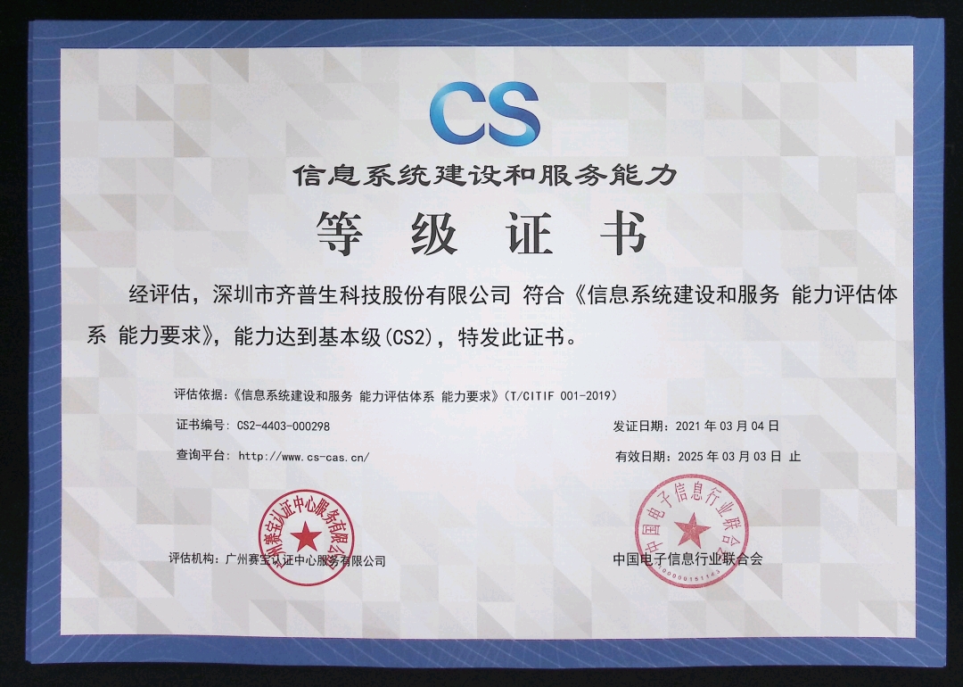 • 信息系統建設和服務能力CS2