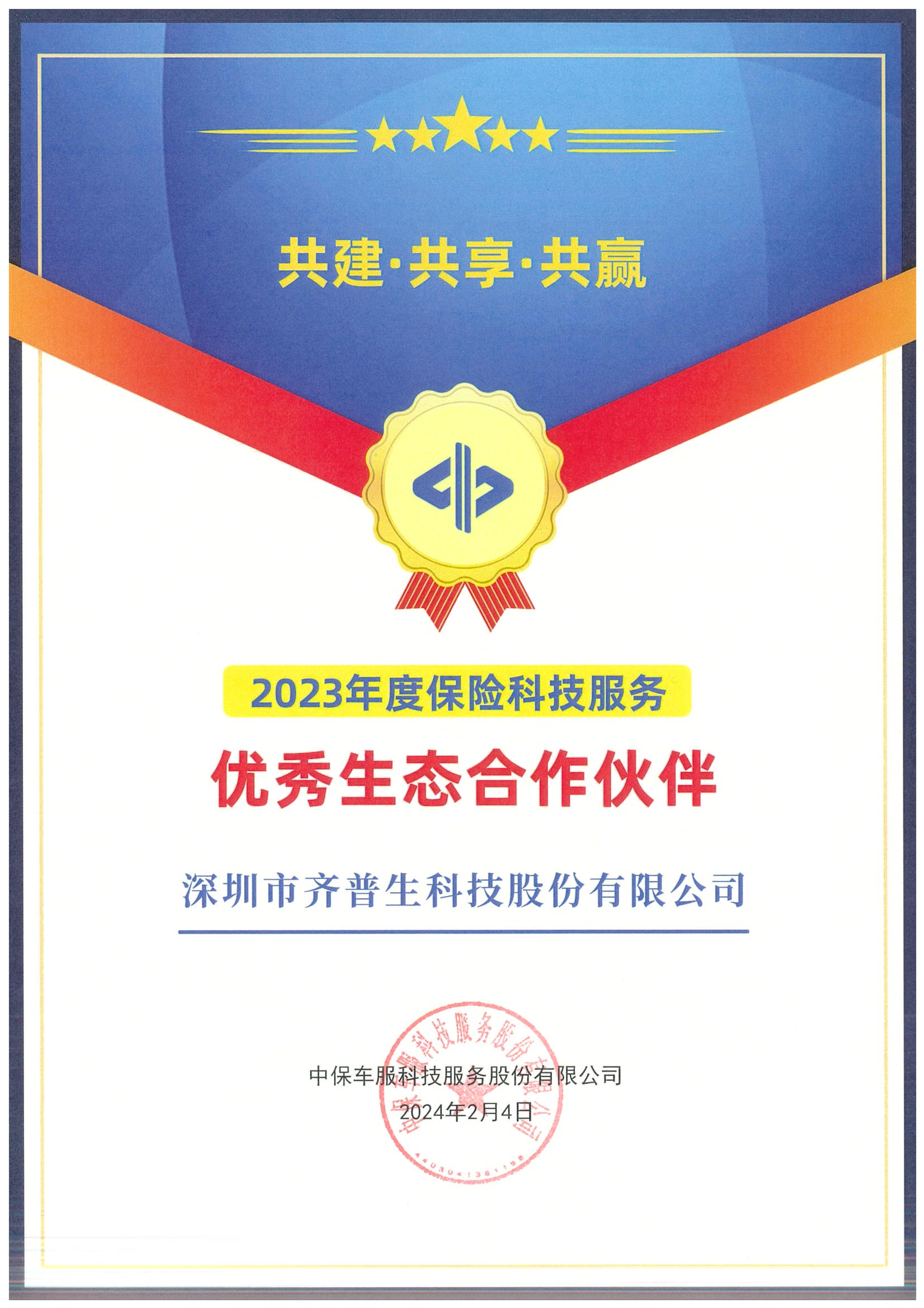 • 保險科技服務優秀生態合作伙伴